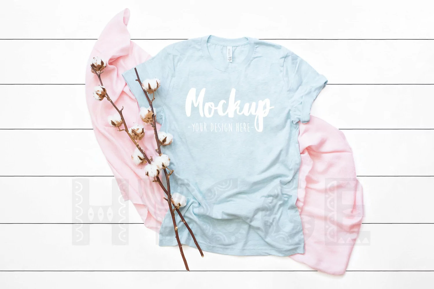 Canvas 3001, Heather Prism Ice Blue Tshirt Mock up