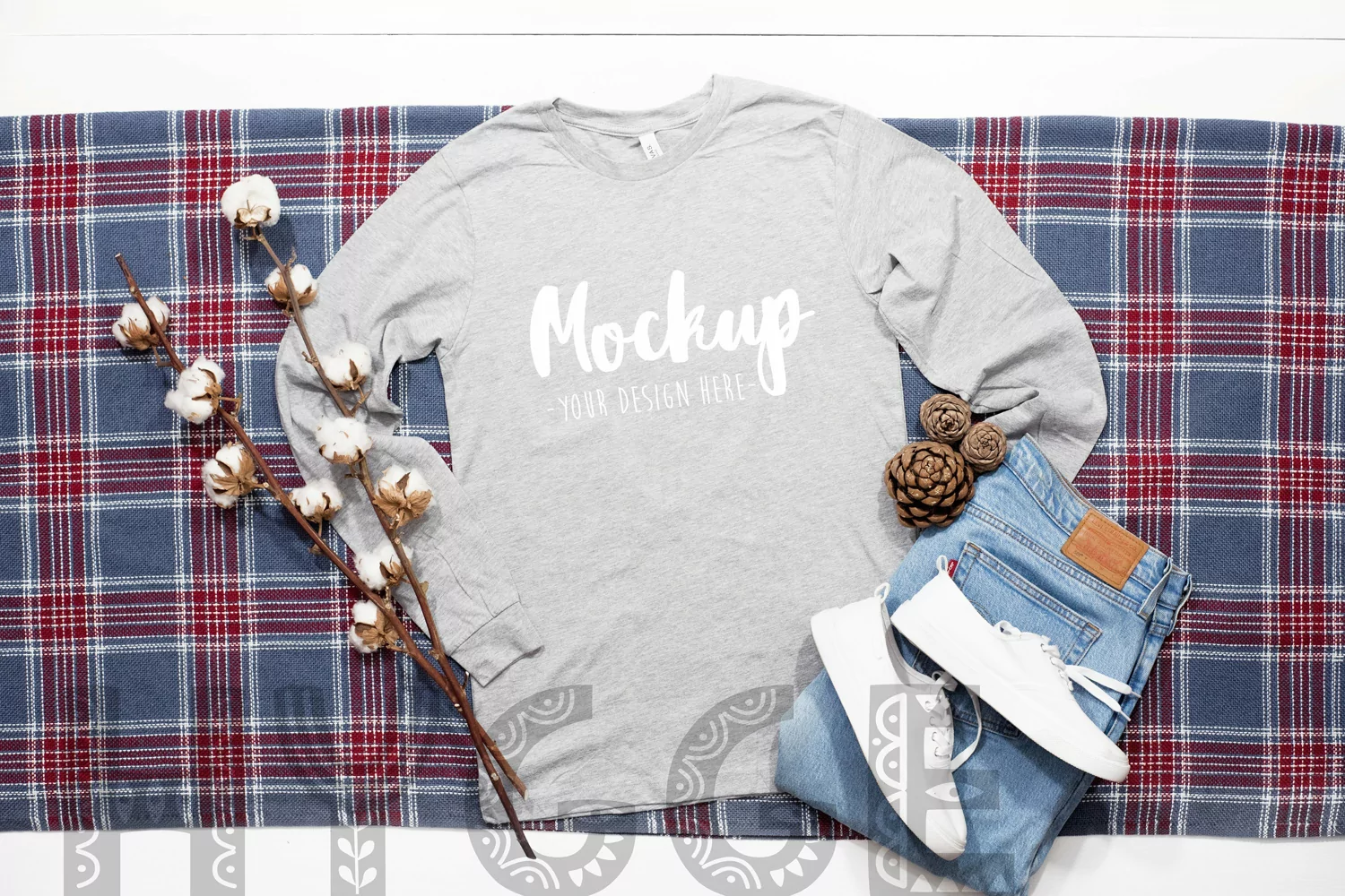 T-shirt Mockup Bella Canvas 3501 Athletic Heather Long Sleeve Mockup, Winter Long sleeve Mockup