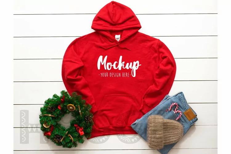 Gildan 18500 Mockup Red Christmas Hoodie Mockup Winter Mock