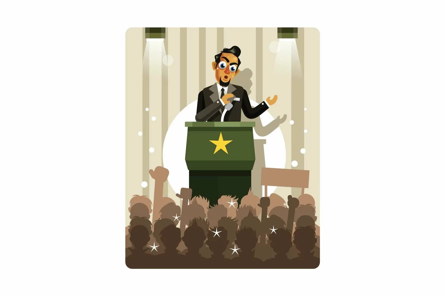 I give the name for this illustration is the illustration of Politicians Speaking Vector Illustration . A Vector Illustration with a New Cartoon Style and of course different from the others.