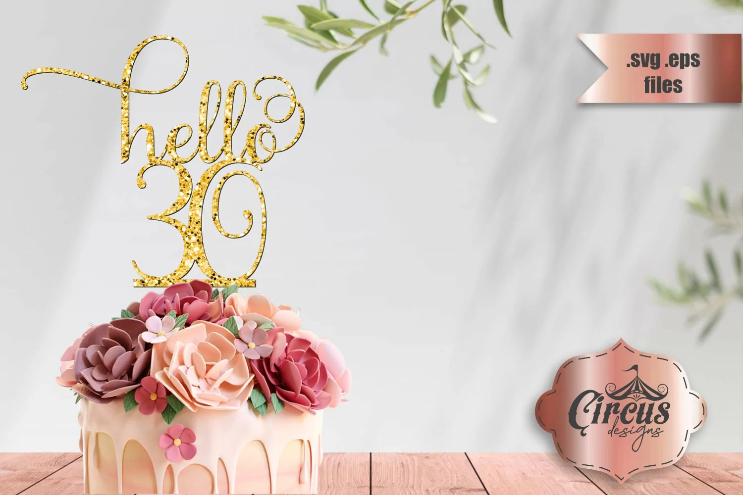 Beautiful cake toppers welcoming a new stage Hello 30, digital file to cut with flotter or laser!
