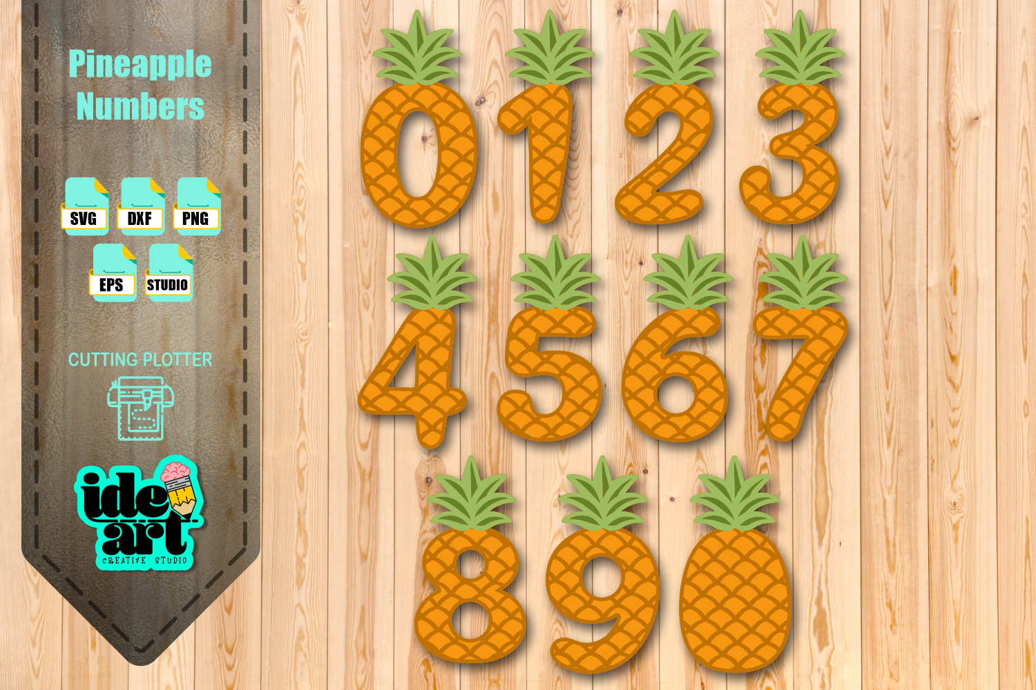 The pack includes the numbers 0 through 9, plus an additional full pineapple, allowing you to create custom compositions for various projects.