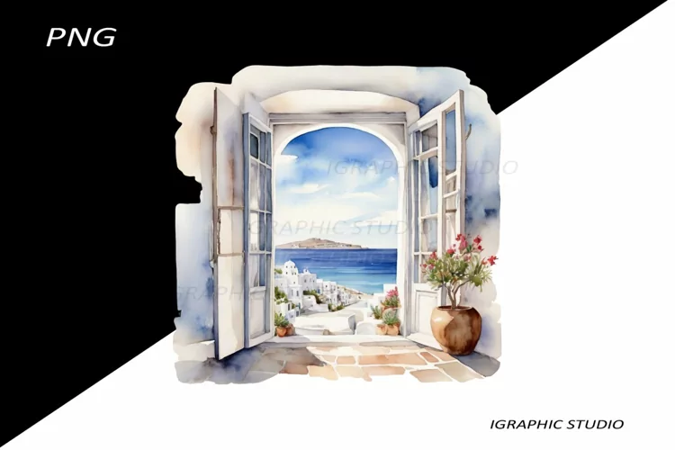 - 1 Greek Clipart, a captivating assortment of watercolor illustrations.