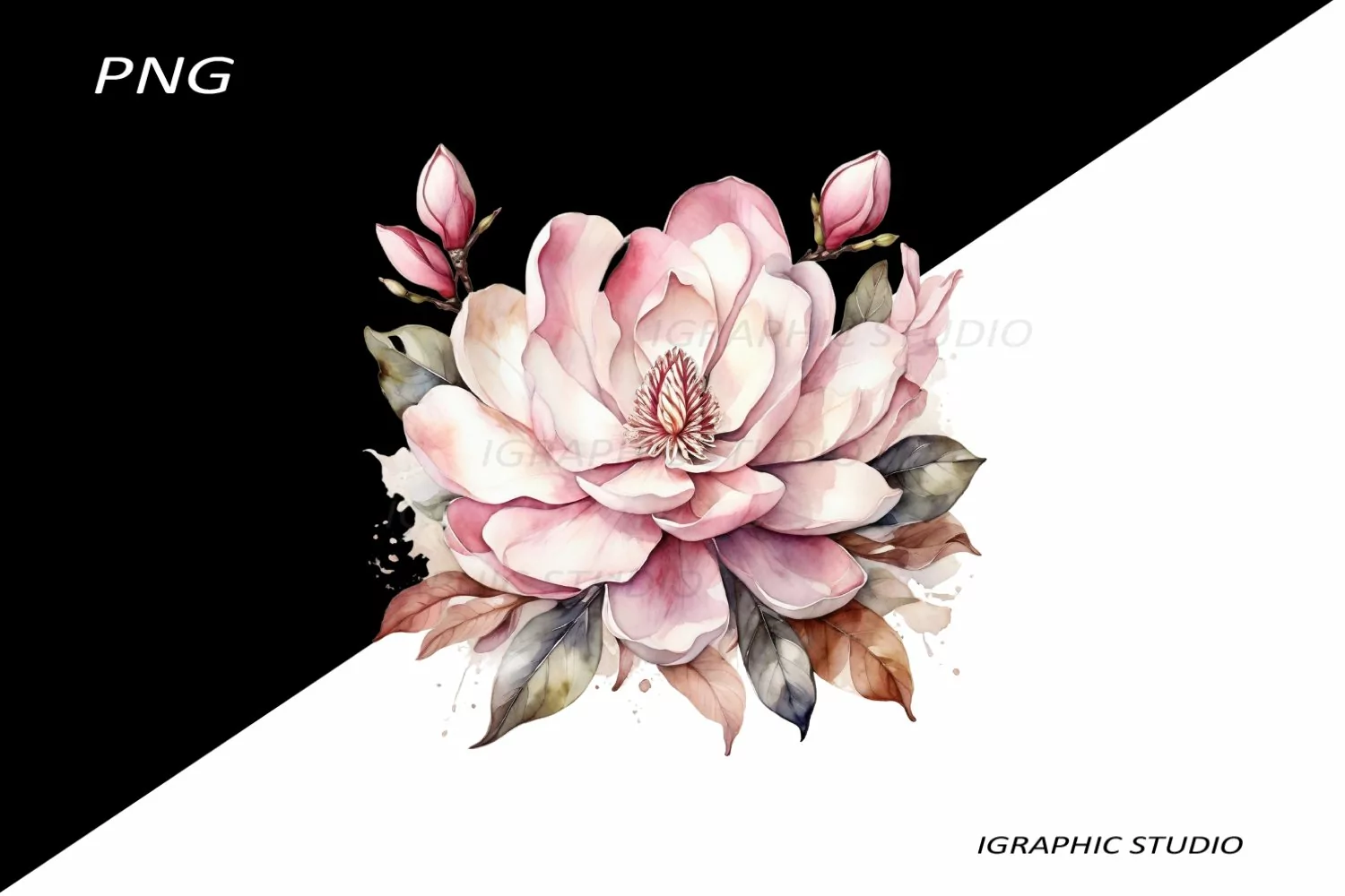 - 1 Magnolia Cliparts, a captivating assortment of watercolor illustrations.