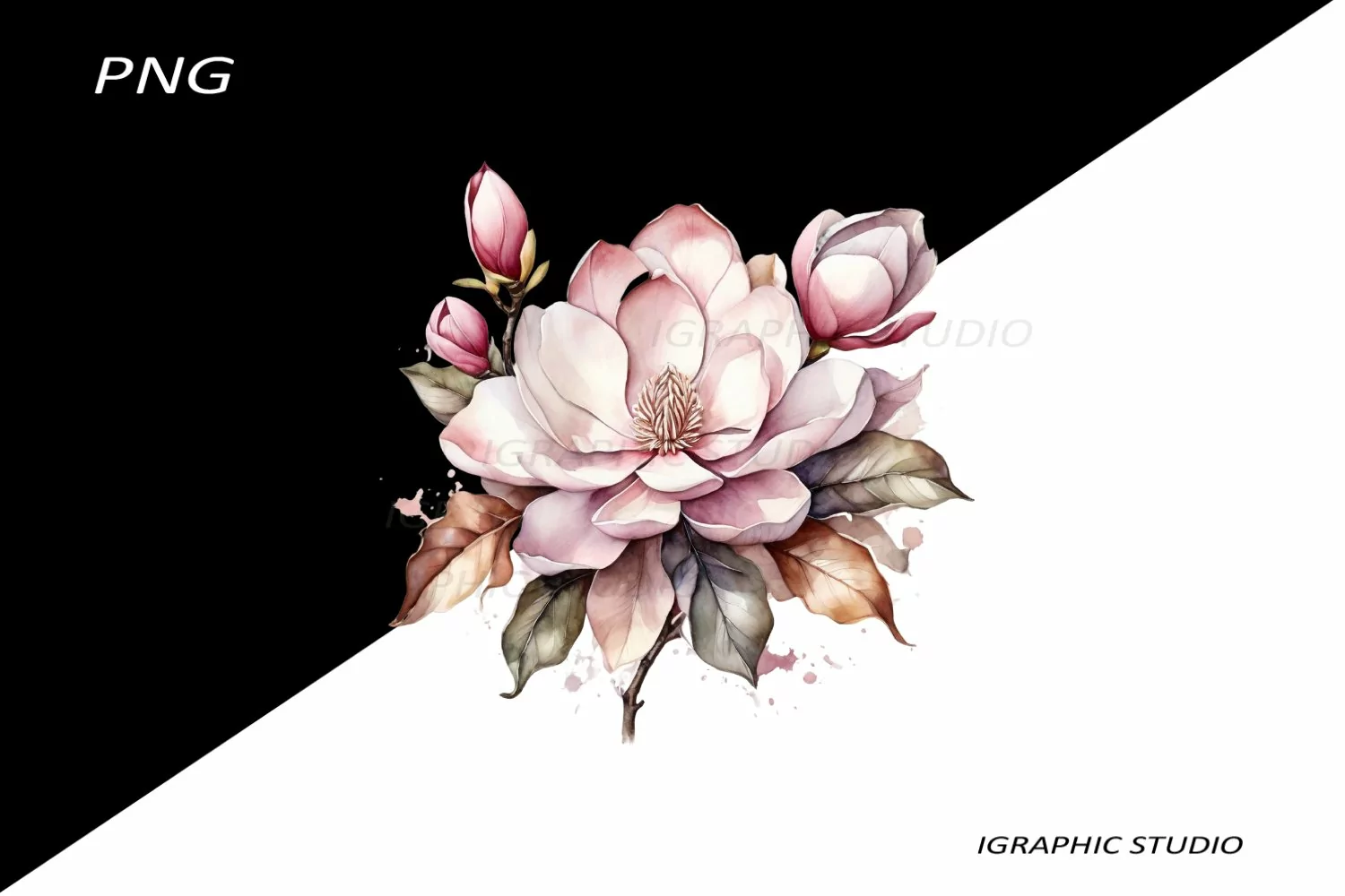 - 1 Magnolia Cliparts, a captivating assortment of watercolor illustrations.