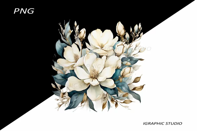 Similar Design Products to Watercolor Magnolia Clipart, Wedding Flowers Clipart