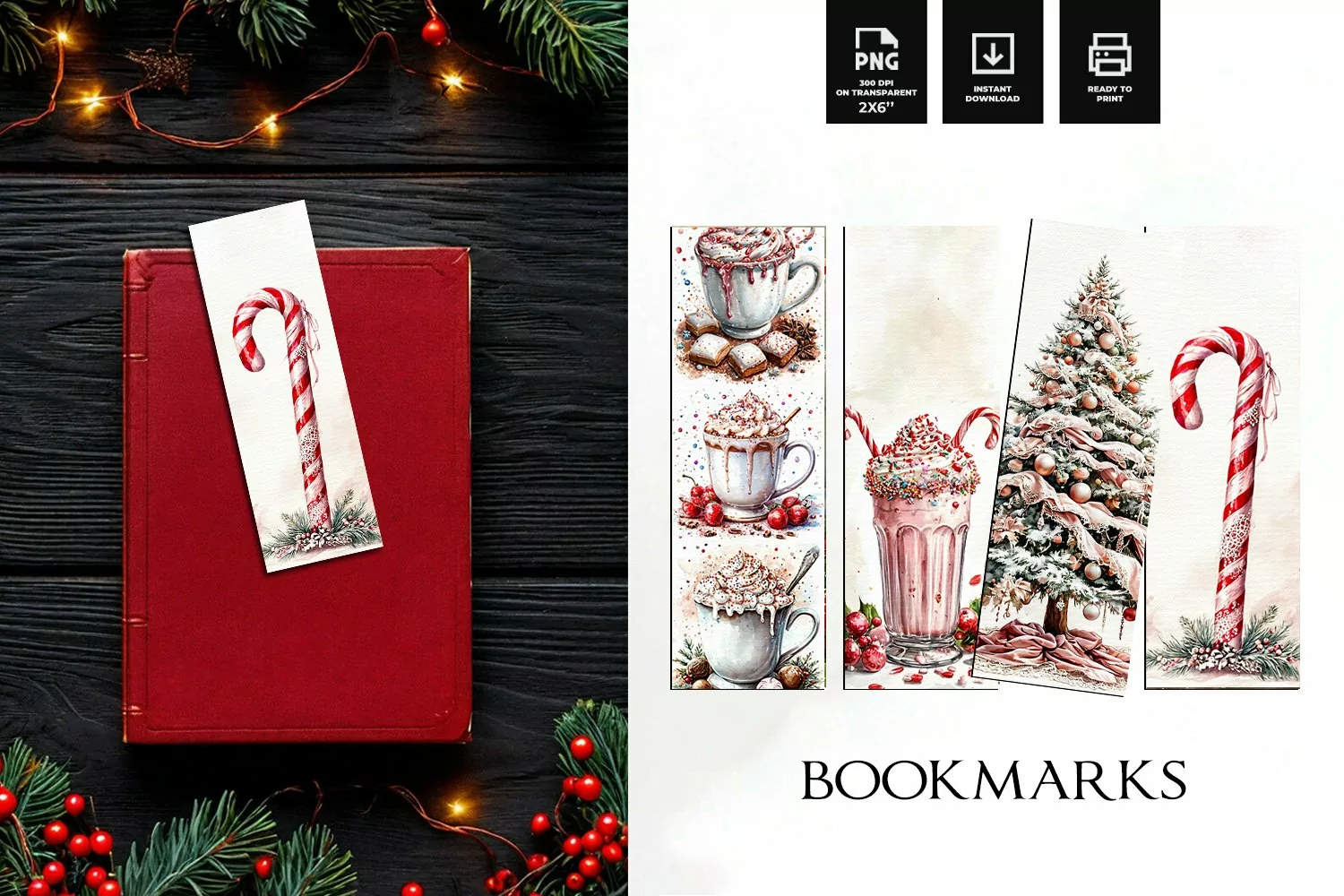 Vintage Christmas bookmark design - Watercolor Bookmark PNG example image 1