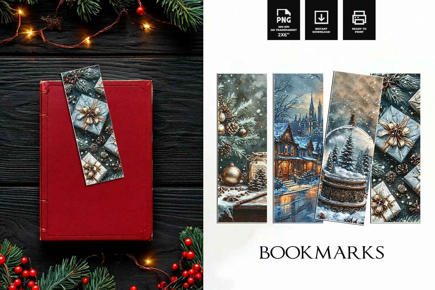 Similar Design Products to Vintage Christmas bookmark design - Watercolor Bookmark PNG