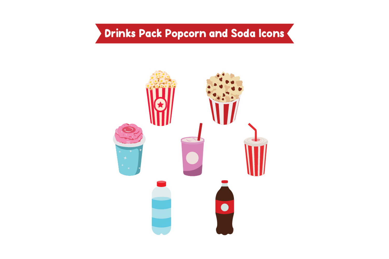 Movie Snacks & Drinks Pack Popcorn and Soda Icons example image 1