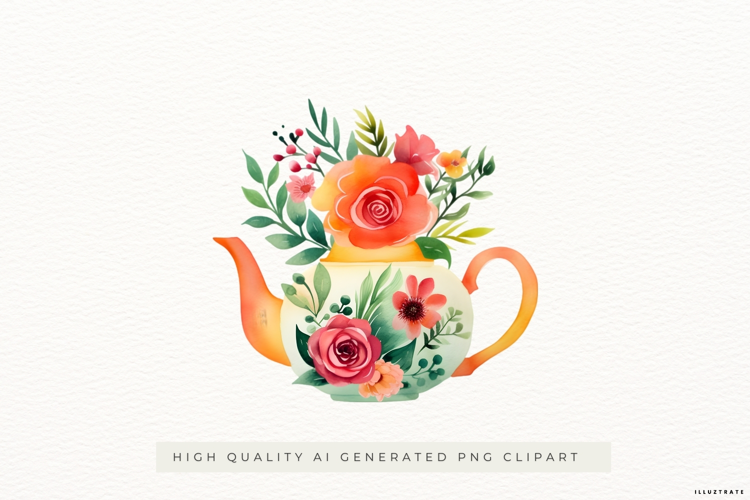 Floral Teapot with Peach Flowers PNG Clipart example image 1
