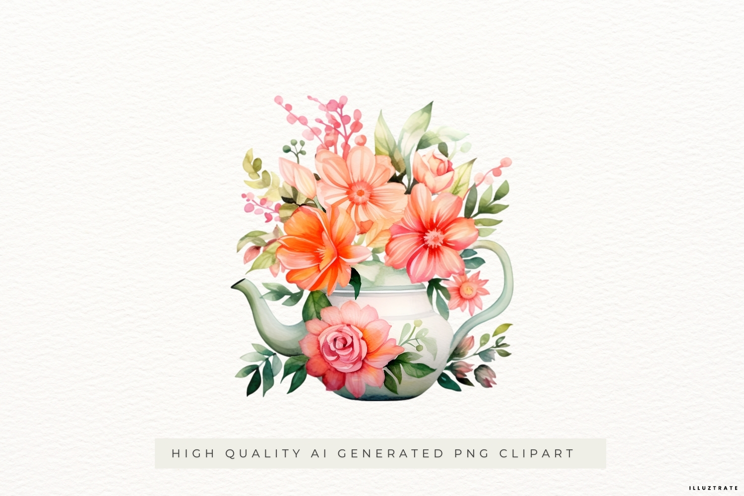 Spring Flower Clipart Watercolor Flower Png Floral Arrangement Png Vintage Floral Art Botanical Clip Art Png Watercolor Teapot Png Floral Pot Png Watercolour Floral Teapot Png Bright Flower Teapot Clipart Colourful Teapot Png