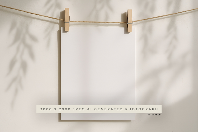 Styled Stock Photography Minimalist Stock Photo A4 Paper Mockup Wall Hanging Mockup Paper Mock-up Jpeg 3000x2000 Jpeg Hanging Paper Mockup Twine And Peg Mock-up Natural Light Shadows Neutral Background Photo