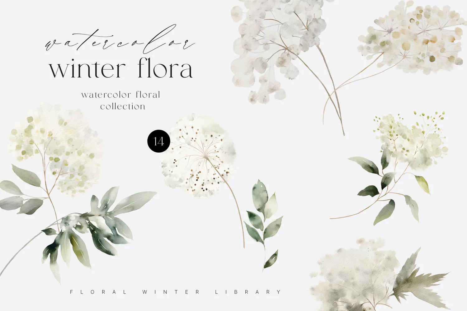 Watercolor Winter Floral Clipart, Watercolor Fluffy Florals example image 1