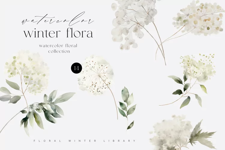 Similar Design Products to Watercolor Winter Floral Clipart, Watercolor Fluffy Florals