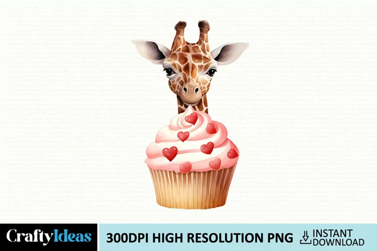 Giraffe Loves Cupcake Valentine Clipart example image 1