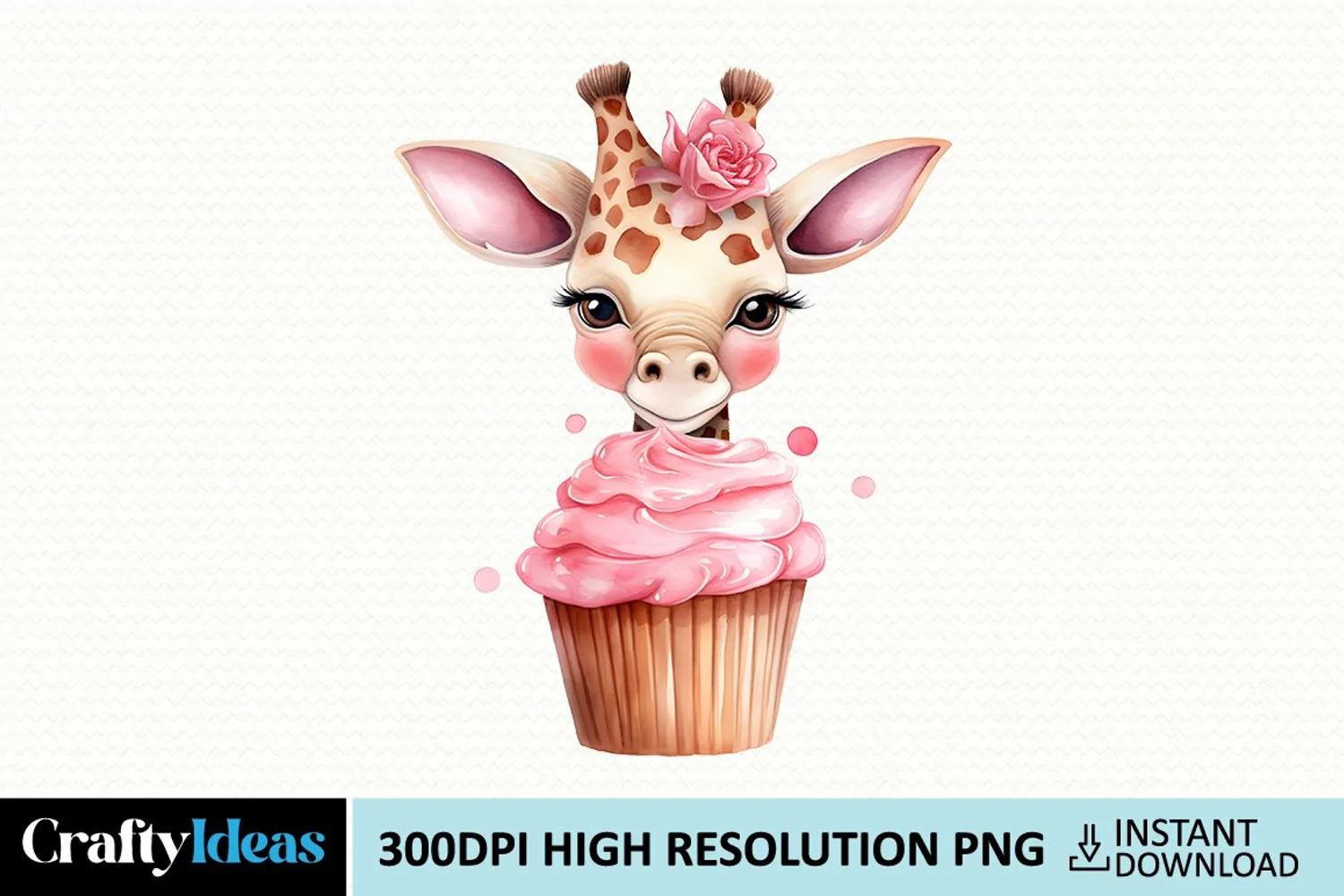 Giraffe Loves Cupcake Valentine Clipart example image 1