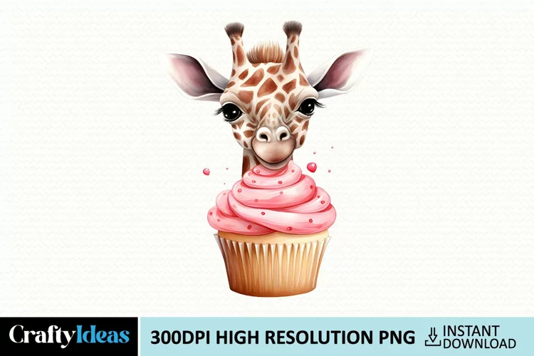 Giraffe Loves Cupcake Valentine Clipart example image 1