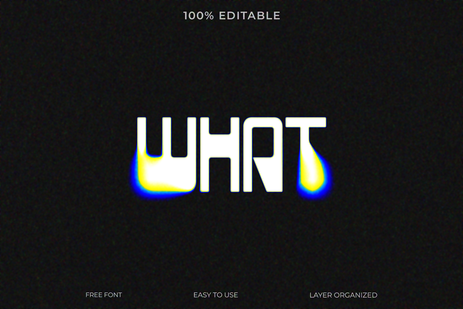 A captivating text effect featuring the word "WHAT" with a clean, modern font and a subtle, colorful liquid distortion below the letters. This design is perfect for abstract and digital art projects.
