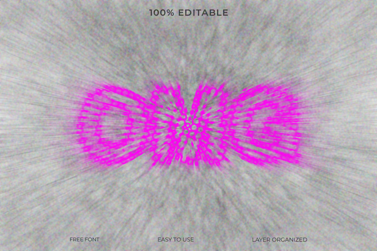 Get this editable Photoshop PSD to create a unique radial motion blur text effect. Perfect for abstract art, poster design, and social media graphics.