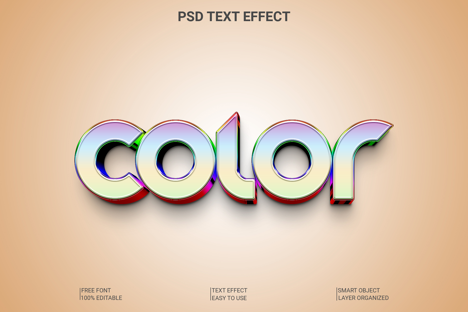 Download this editable Photoshop PSD to create a cool 3D, shiny, and colorful text effect. Perfect for posters, digital art, and modern graphic design projects.