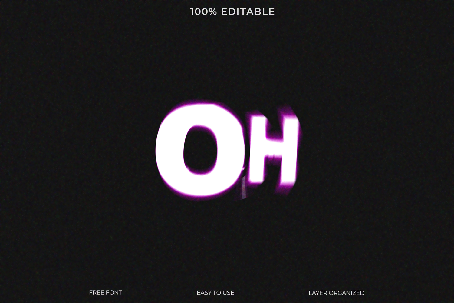 Download a free and editable text effect template to create a vibrant neon glow for your designs. This template is easy to use and includes organized layers, perfect for your next creative project.