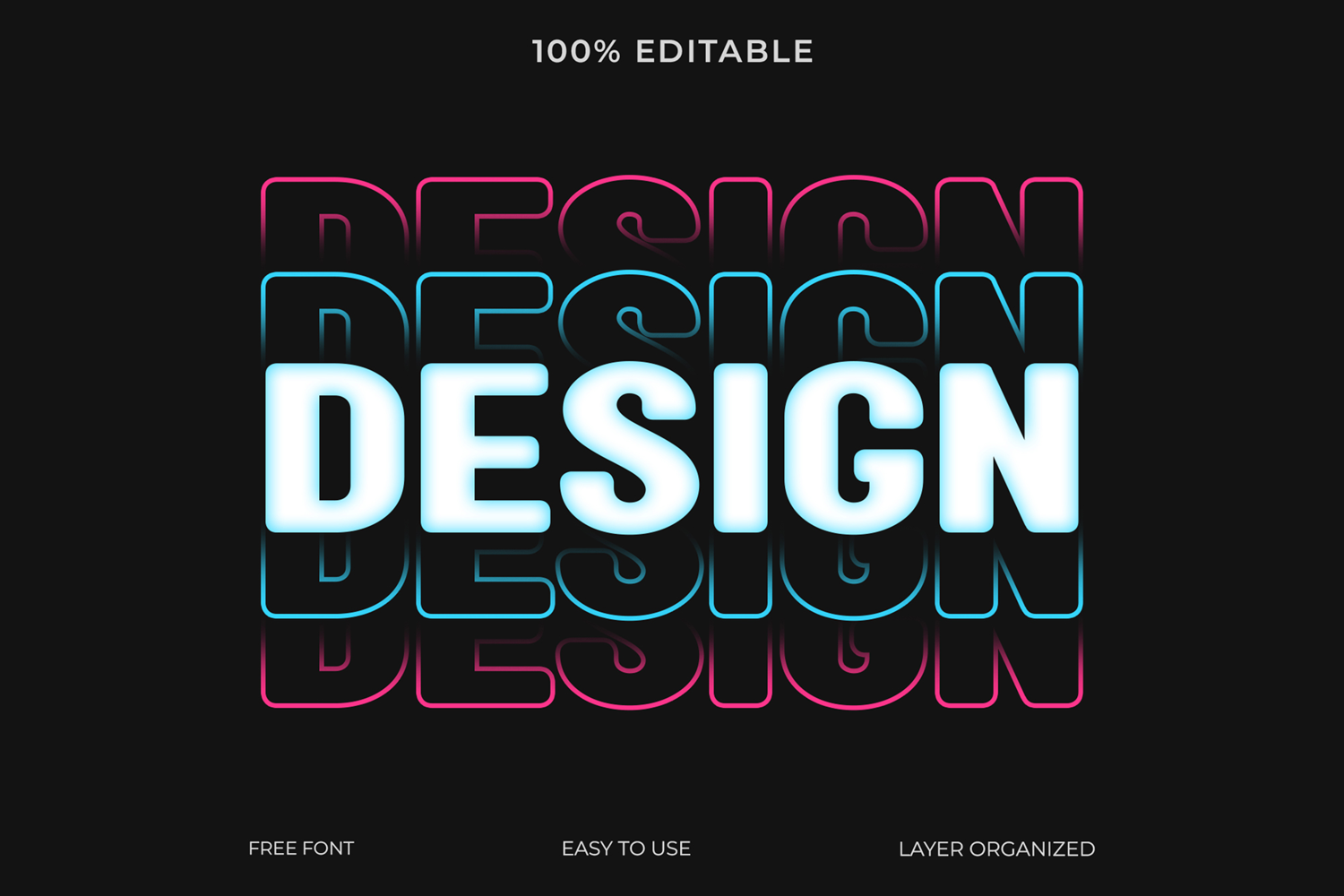 Download this free and editable neon glitch text effect template. It's easy to use and fully customizable for your design projects.