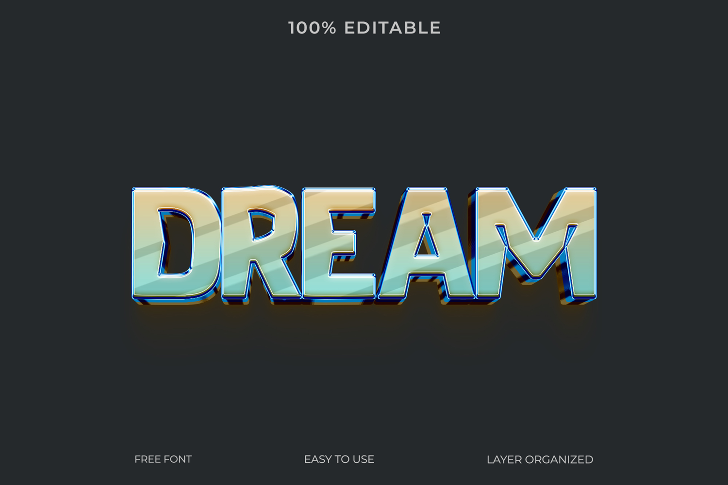 Download this free and editable 3D dream text effect template. It features a shiny, modern style that is easy to use and fully customizable for your design projects.