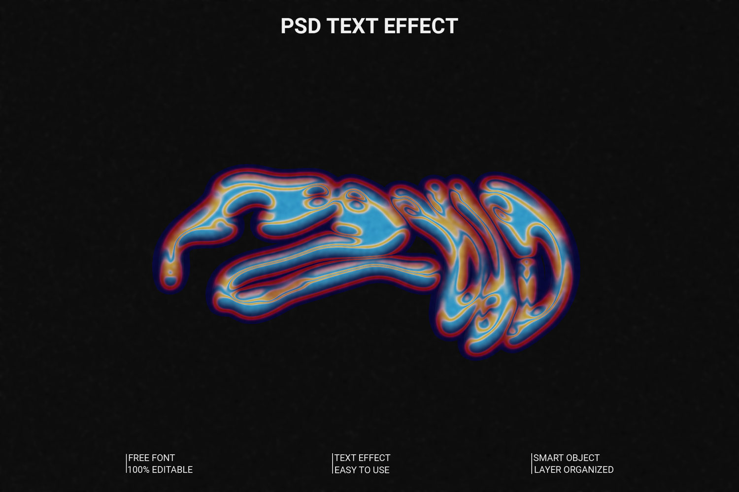 Download this free PSD text effect to create a striking, fluid, and psychedelic look. It's fully editable via smart objects and ideal for music posters, album covers, or any creative project needing a unique style.