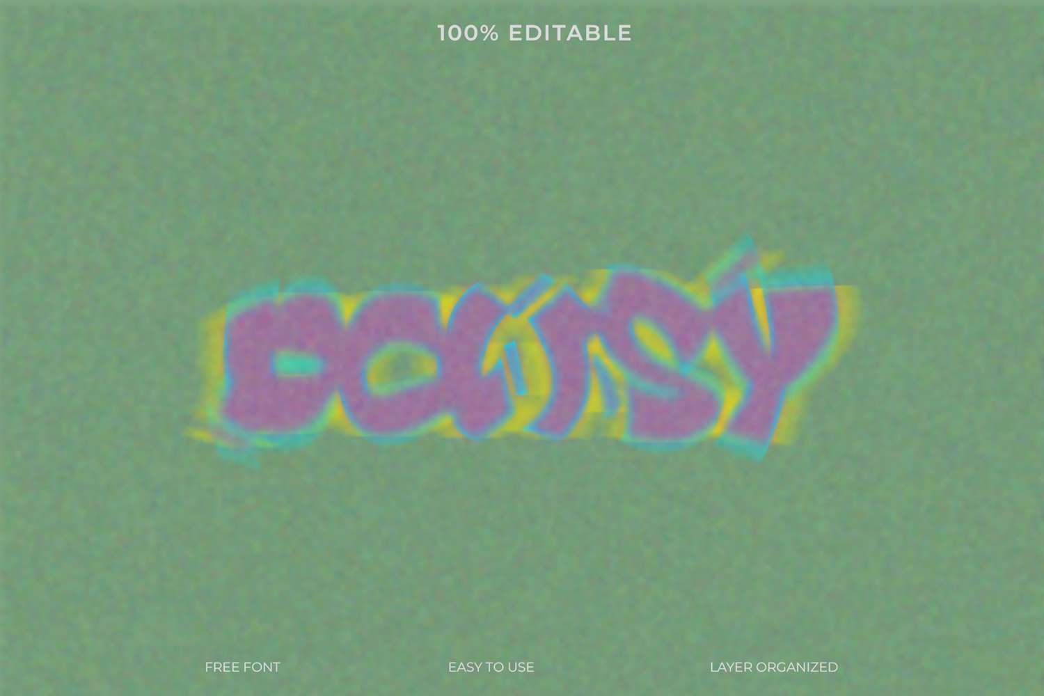 A playful and vibrant retro text effect for the word "BOUNCY." This editable template has a unique wavy and blurred style, perfect for creating dynamic posters, fun logos, or eye-catching social media content.
