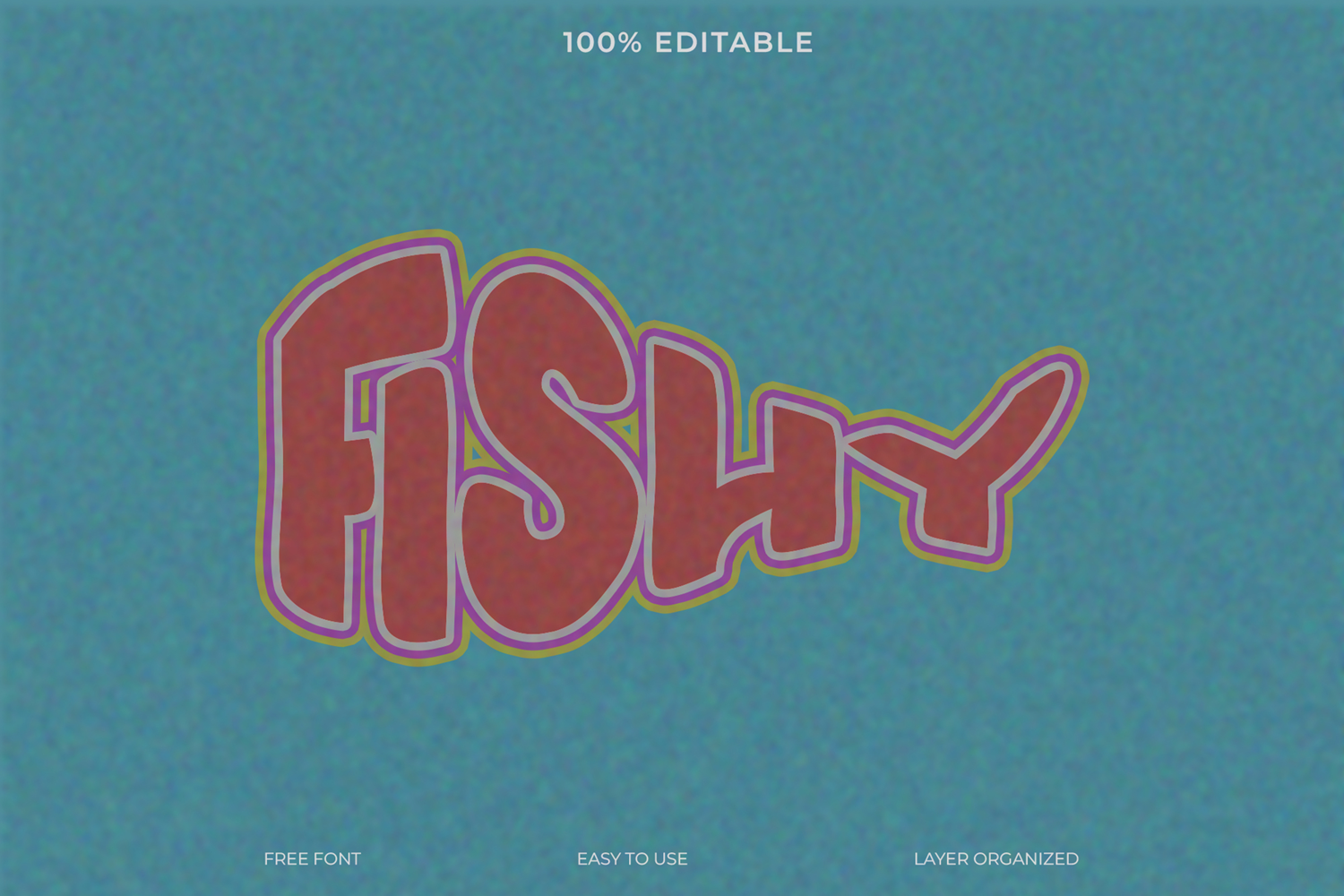A creative and playful bubble text effect for the word "FISHY" with a retro, vibrant style. This fully editable template is perfect for fun logos, children's book titles, or any design that needs a whimsical and unique look.