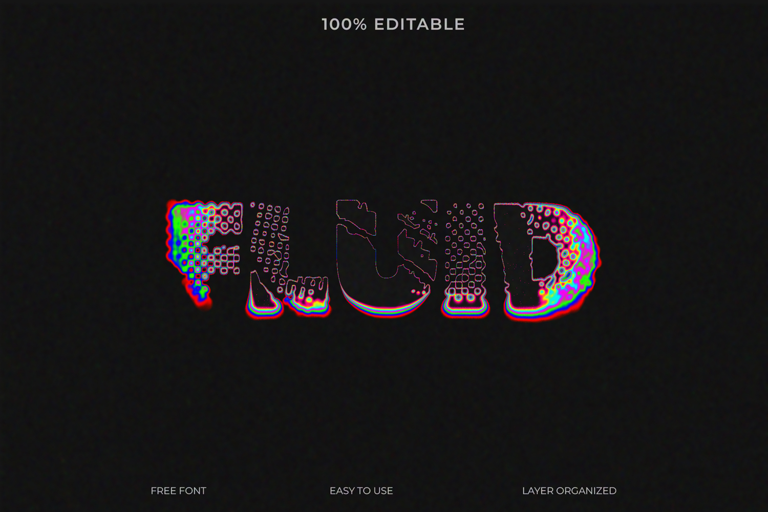 Easily create a retro-style glitch and holographic text effect with this fully editable Photoshop template. Perfect for vintage, digital, and abstract designs.
