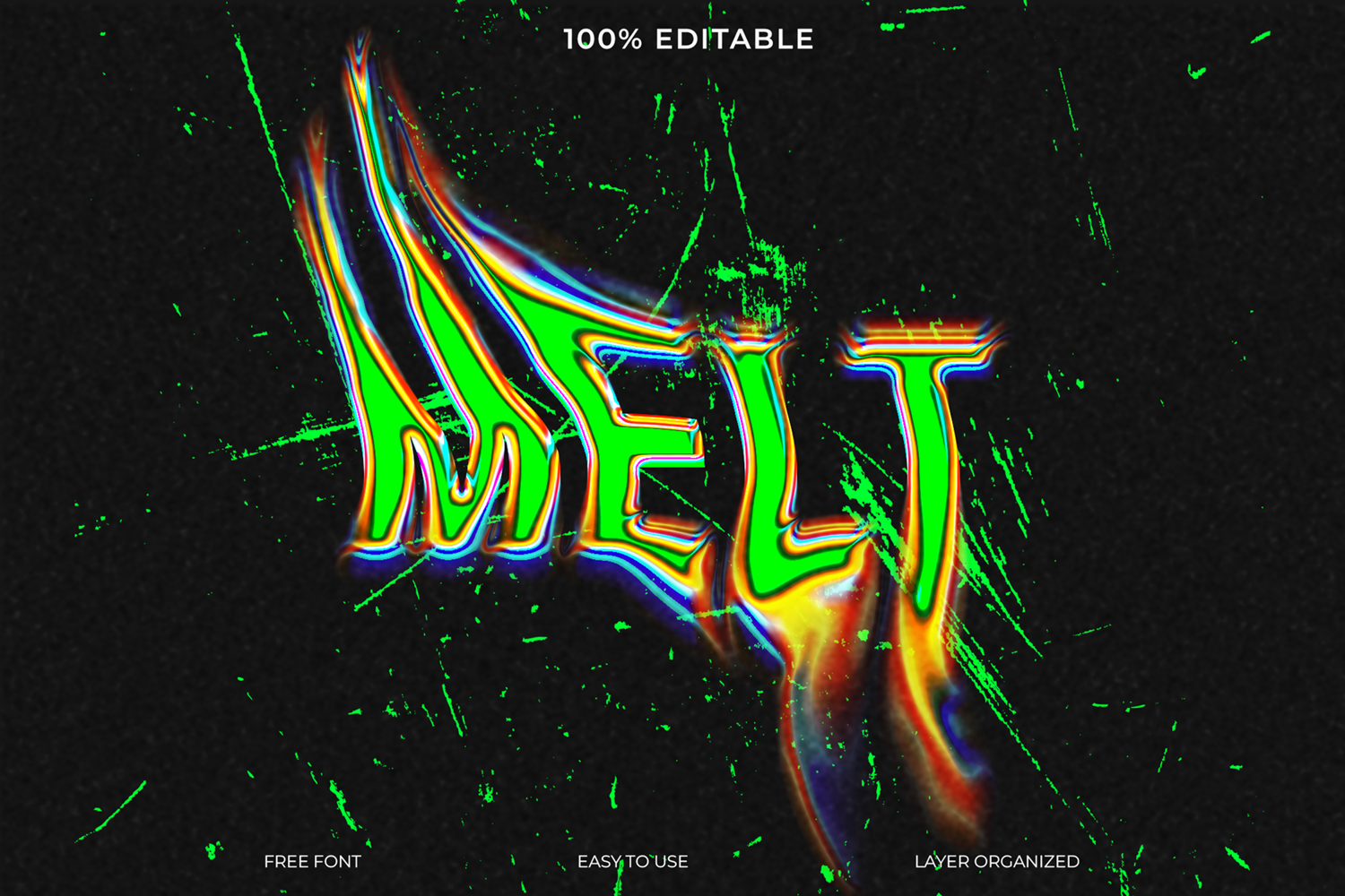 Editable Graphic Design Vibrant Customizable Psd Template Abstract Art Photoshop Effect Psychedelic Font Dripping Text Melted Text Effect