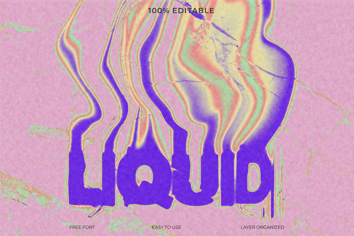 This graphic design asset features an editable liquid text effect, perfect for creating dynamic and abstract typography. The file is layer organized and easy to use.