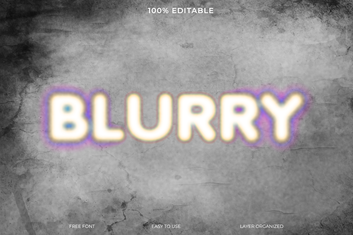 Add a soft, glowing, and blurry effect to your text with this 100% editable Photoshop template. Perfect for creating unique posters, social media graphics, and website headers.