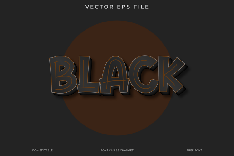This black text effect features a bold 3D design that is fully editable. This vector EPS file is a free font you can easily customize for various projects.