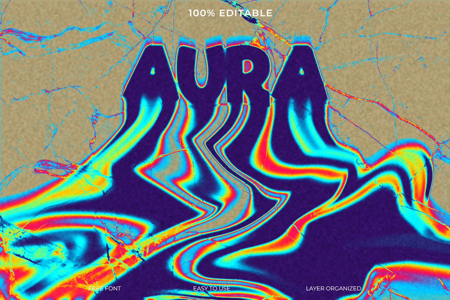 Download this editable melting liquid text effect for Photoshop. The file is easy to use with organized layers, and includes a free font to recreate this abstract, psychedelic design.