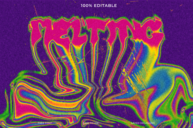 Download this editable melting psychedelic text effect for Photoshop. The file is easy to use with organized layers, and includes a free font to recreate this abstract, vibrant design.
