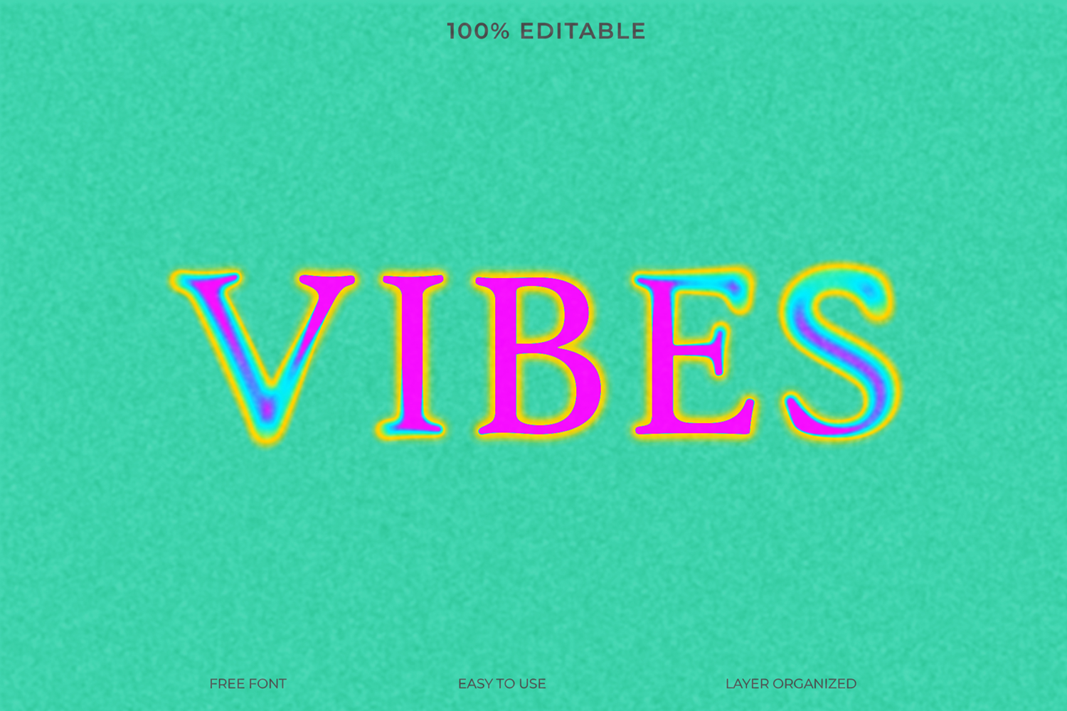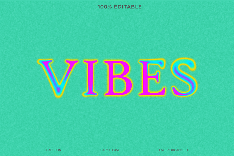 Download this editable gradient text style for Photoshop. The file is easy to use with organized layers, and includes a free font to recreate the vibrant, colorful design.