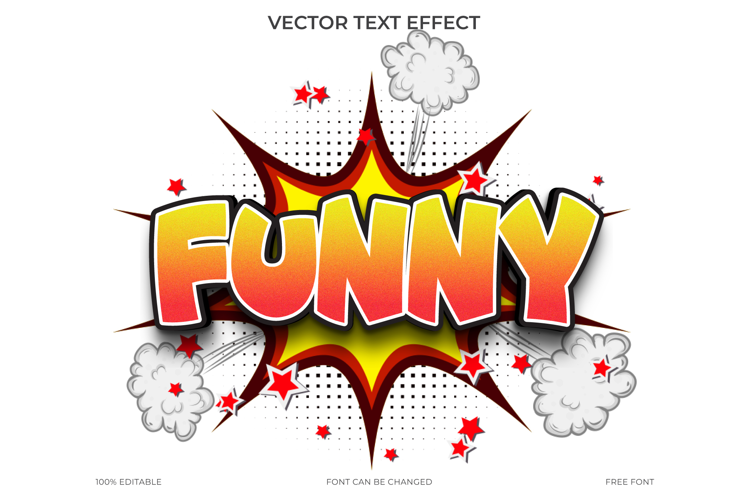 A vibrant, comic book-style vector text effect perfect for adding a fun and playful pop to your designs. This fully editable style is great for social media, cartoons, or any project that needs a burst of humor.