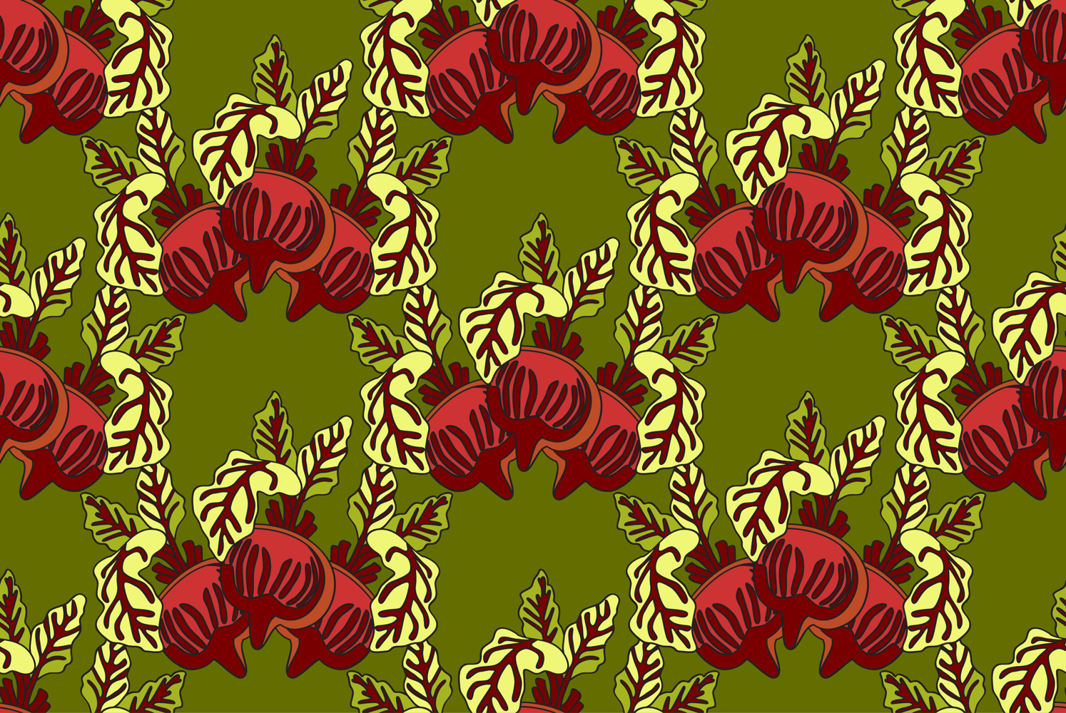 Botanical abstract seamless pattern with juicy beets vector illustration. Colorful vegetables repeating cartoon pattern in green color background. Graphic design for Fashion Cover Textile Birthday Greeting Card Invitation Wedding Poster Product Print Wallpaper Book Shop Market Advertising