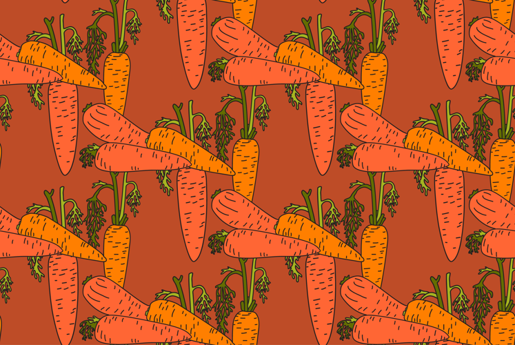 Botanical abstract seamless pattern with juicy carrots bg