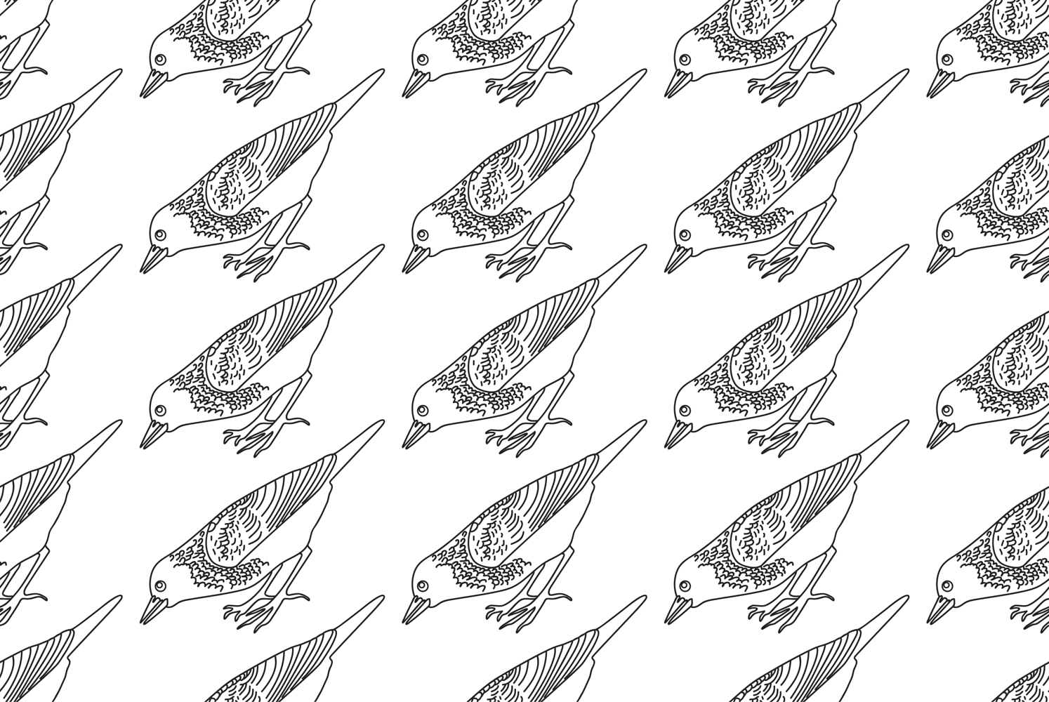 Vector Outline Fashion Pattern Background Line Art Seamless Bird Common Starling