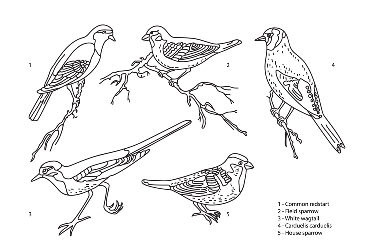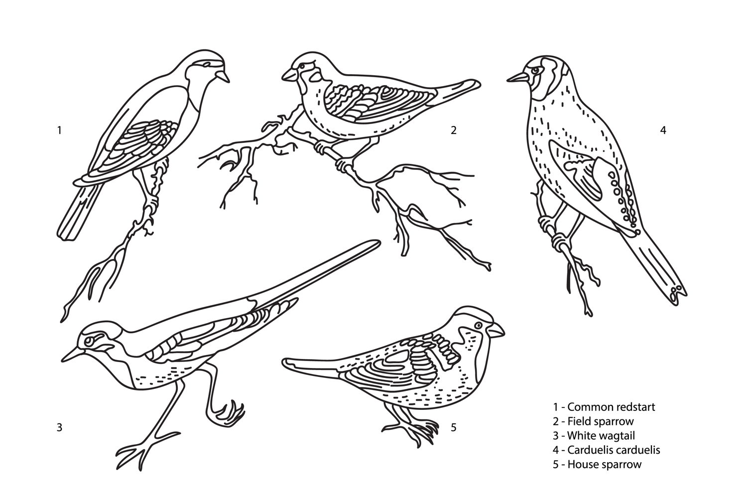 Line art botanical collection with garden birds isolated on white background. Hand drawn outline set of birds vector illustration. Graphic design for School Learning Material Manual Science Coloring Book Botany Print Poster Product Greeting Card Birthday Invitation Wallpaper Fashion Cover
