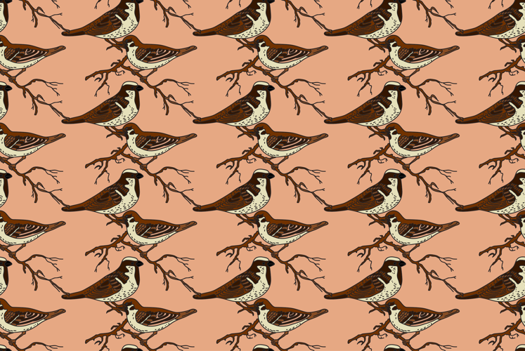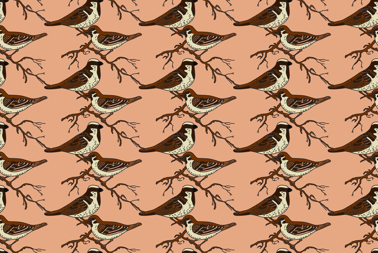Vector Fashion Pattern Background Boho Brown Seamless Bird Beige Sparrow