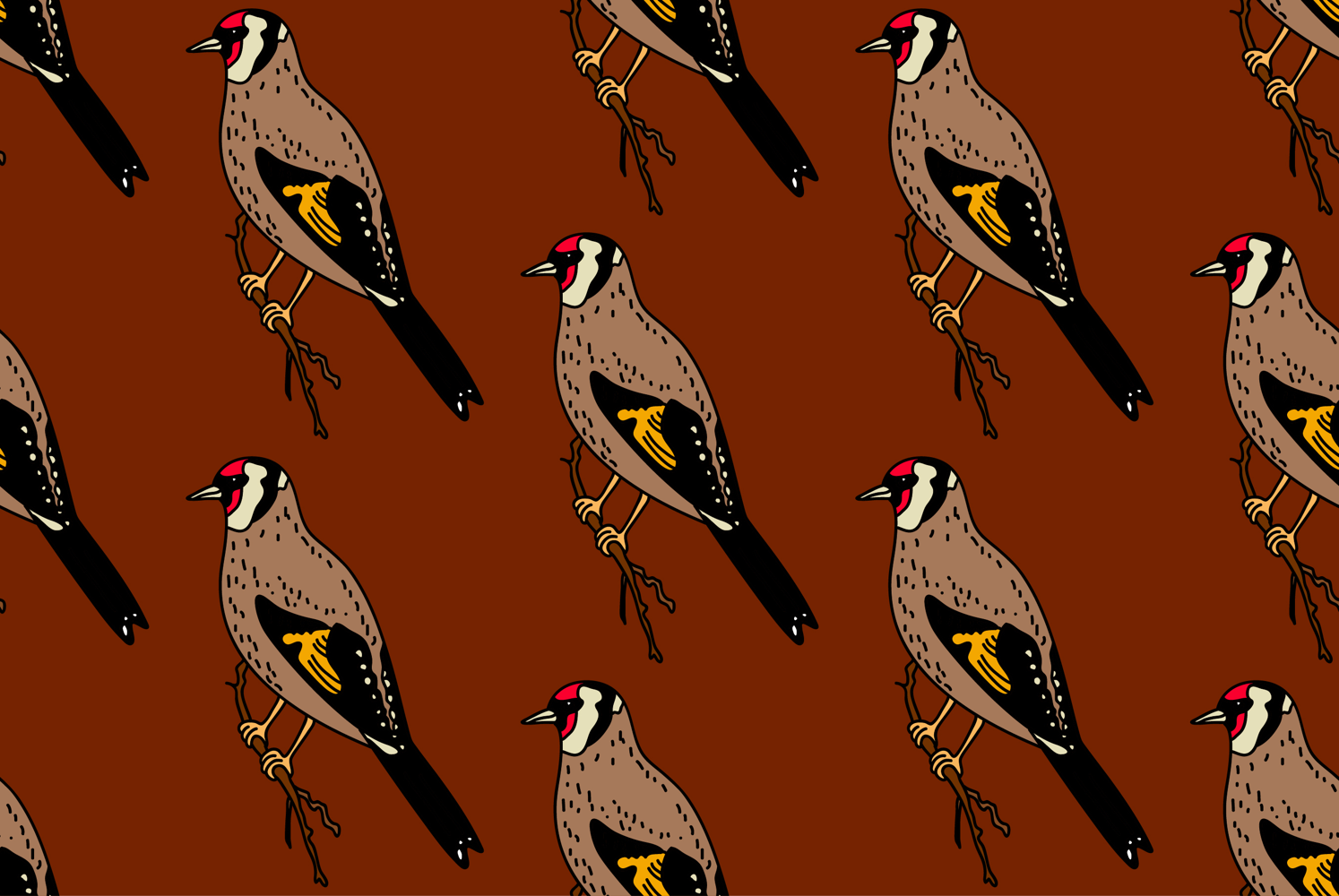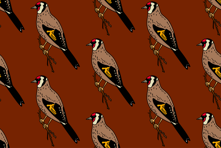 Vector Fashion Art Pattern Background Boho Brown Seamless Bird Carduelis