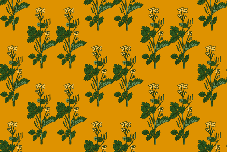 Botanical floral seamless pattern with celandine flowers vector illustration. Repeating green plant pattern in yellow background. Graphic design for Fashion Cover Textile Birthday Greeting Card Invitation Wedding Poster Print Wallpaper Book Advertising Product Shop Market