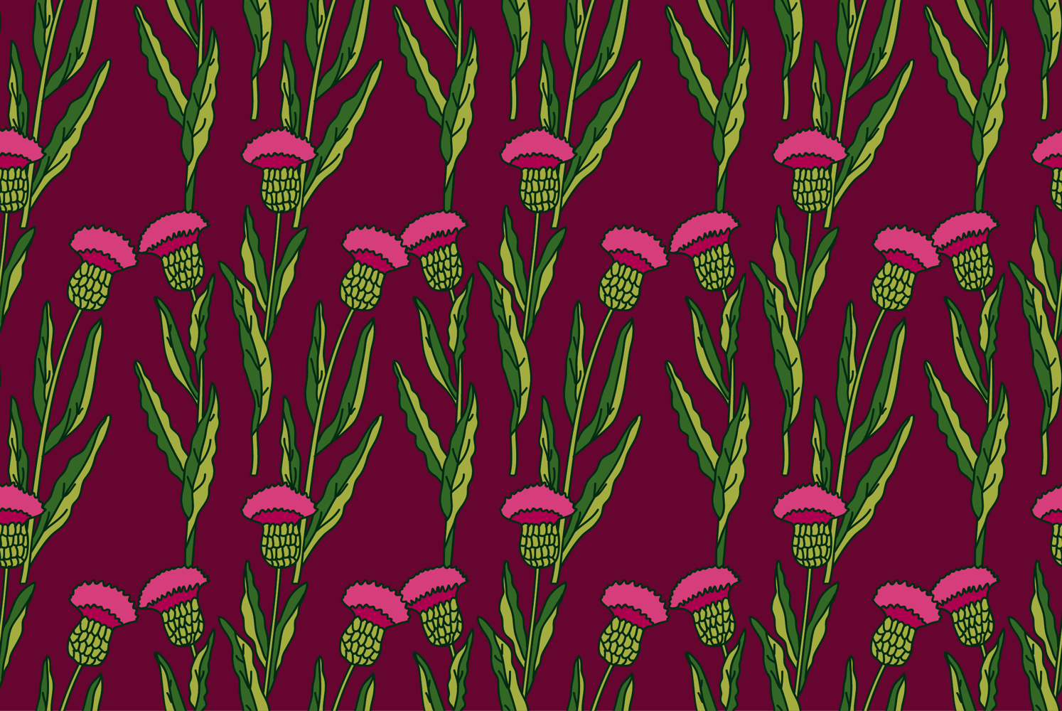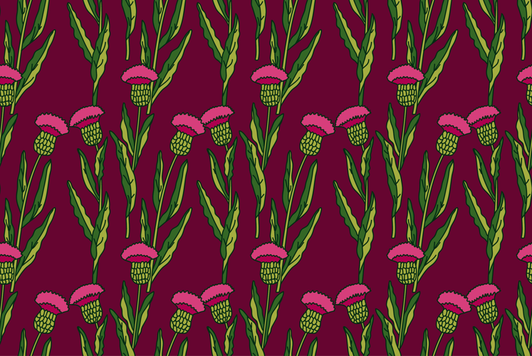Botanical floral seamless pattern with cornflowers bouquet vector illustration. Repeating pink flowers with green leaves in burgundy background. Graphic design for Fashion Cover Textile Birthday Greeting Card Invitation Wedding Poster Print Wallpaper Book Advertising Product Shop Market