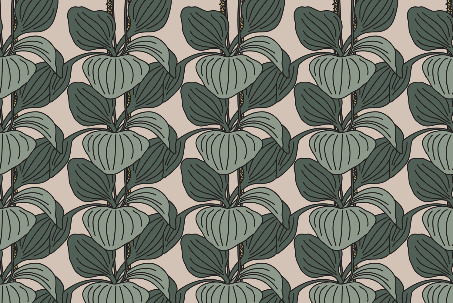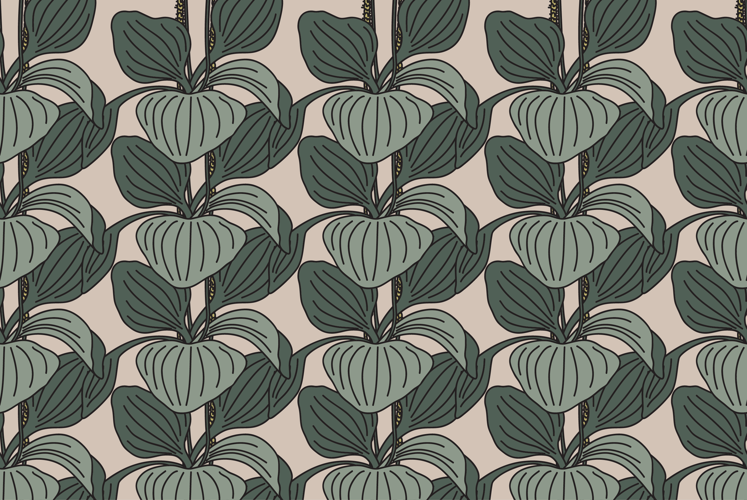 Botanical floral seamless pattern with plantain bushes vector illustration. Repeating plantain leaves plants in beige background. Graphic design for Fashion Wedding Textile Greeting Card Cover Birthday Wallpaper Print Fabric Invitation Poster Flyer Book Page Banner Advertising Booklet Magazine Product