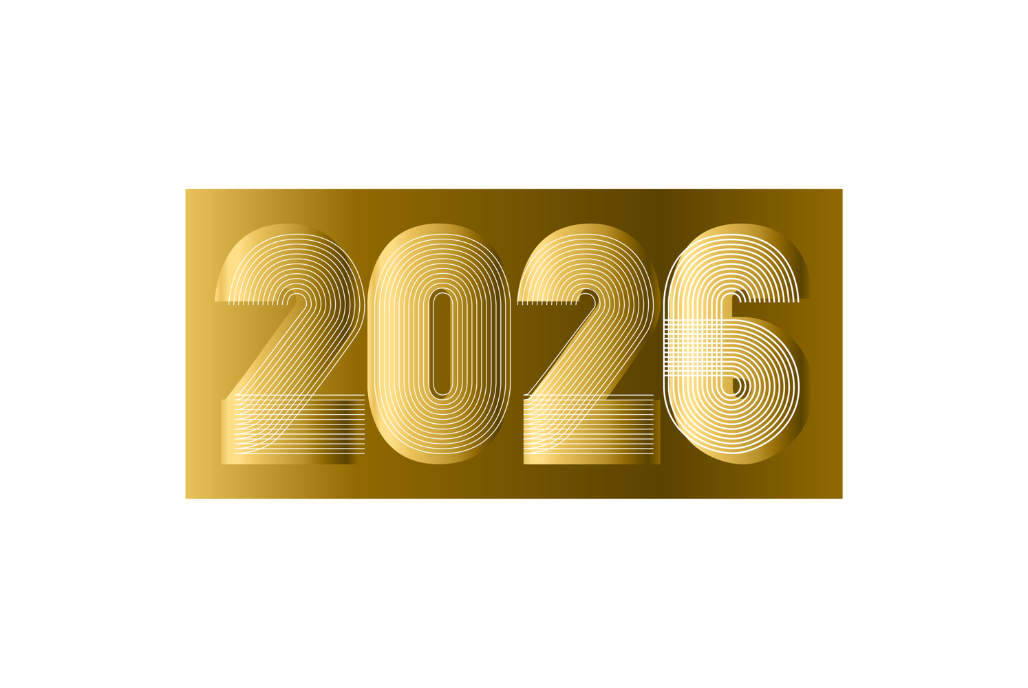 Modern cover background with horizontal 2026 number on golden foil background. Graphic design vector illustration for Happy New Year Christmas Banner Greeting Card Invitation Poster Flyer Party Icon Symbol Sign Event Brochure Magazine Label Promotion Template Post Story Social media Company Name Folder Business Booklet Book Layout Ad Advertising Icon Symbol Sign Annual Report