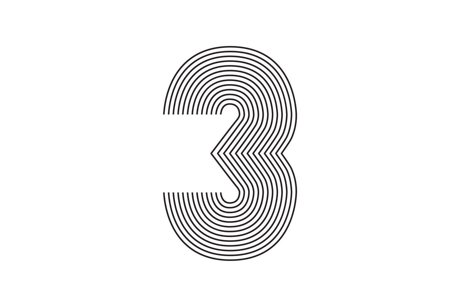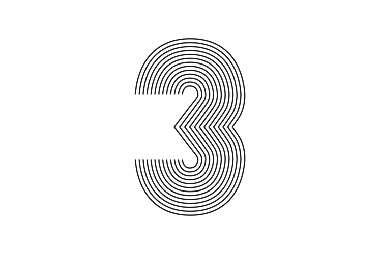 Number three 3 Line Art in black thin lines striped isolated example image 1